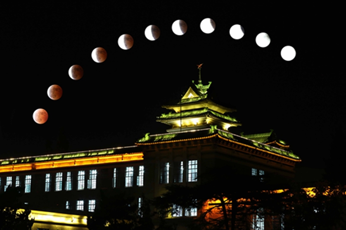 2014-10-8 以主楼为背景的红月月食轨迹