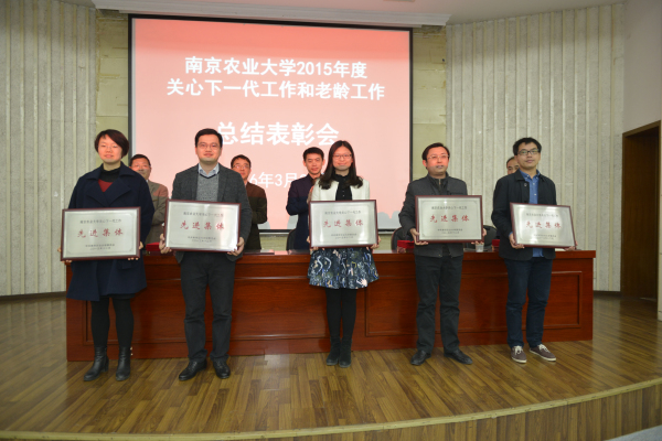 组织部部长、老干部办公室主任吴群宣读了《关于表彰2015年度关心下一代工作和老龄工作先进集体和先进个人的决定》(党发【2016】8号)。农学院等5个关心下一代工作先进集体、园艺学院等10个老龄工作先进集体、王春伟等20名关心下一代工作先进个人、马凯等20名老龄工作先进个人依次上台领奖。校关心下一代先进集体代表孙觉炎、先进个人代表曹光辛、校老龄工作先进集体代表陈劲枫、老龄工作先进个人代表张剑仲分别进行交流发言。