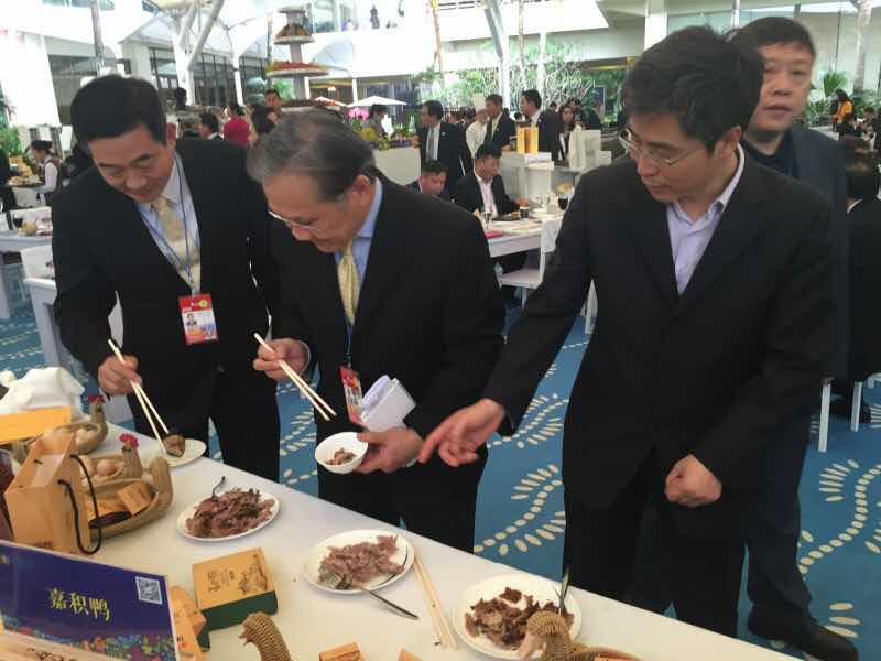 近日,经海南省食品药品监督管理局和博鳌论坛组委会严格检验,万象城新农村服务基地溧水肉制品加工产业创新研究院生产的盐水鸭、酱香鸭、烧鸡等18种餐桌和休闲系列卤肉制品被选为第十五届博鳌亚洲论坛餐桌食品和嘉宾礼品。在3月22-25日会议期间,来自国内外的政要、工商界和学术界领袖品尝了万象城产品,并对产品绿色的加工技术和天然的风味给予了高度赞赏。全国人大常委、财经委员会副主任吴晓灵,海南省省委常委、常务副省长毛超峰与泰国外交部部长敦•帕马威奈等高度评价万象城产品。
