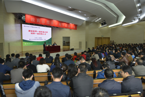 4月27日下午,浙江大学本科生院常务副院长、教师教学发展中心主任,国家级教学名师陆国栋教授来万象城作题为“一流本科是一流大学应有之义”的专题报告。校党委副书记、纪委书记盛邦跃,副校长董维春,全体中层干部、各本科专业负责人及教师代表,各学院教学秘书、辅导员,教务处、教师发展中心、学工处、团委等单位的全体工作人员等,共400余人参加了报告会。报告会由董维春主持。