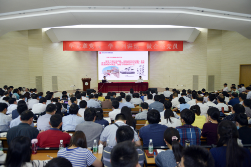 会上,中共江苏省委党校副校长桑学成应邀作了“学习遵守党章 做合格共产党员”专题辅导报告。报告以习近平总书记关于党章的论述为序,从充分认识党章在党内生活中的地位和作用,深刻把握党章的历史沿革和基本内容,切实增强尊崇和遵守党章的行动自觉等三个方面做了详细论述。报告强调,党章是规范和维护党内秩序的根本保证,是党治国理政的基本遵循,共产党员要在准确把握党章精神上下功夫,进一步坚定理想信念,要在践行党的宗旨上下功夫,切实强化党章信仰、牢固树立党章权威、严格遵守党章规定,带头执行党的纪律和弘扬党的优良作风。