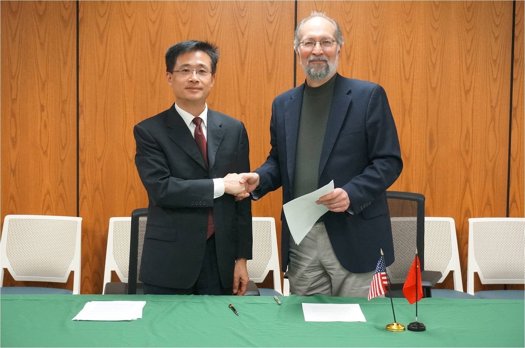 密西根州立大学负责国际合作副校长Steven Hanson教授、负责学术副校长兼农学与自然资源学院院长Doug Buhler教授分别会见了代表团。在双方会谈中,胡锋回顾了近年来两校教授和研究人员之间的学术交流与合作,他指出,密西根州立大学是一所在美国享有盛誉的赠地大学,在农业与生命科学领域与万象城有较好的合作基础,此次两校建立正式校际合作关系、签署合作备忘录,有利于拓展两校的合作领域,提升合作层次。他表示,为应对环境与农业生产、食品与人类健康等全球发展面临的问题与挑战,万象城提出了两校在南京联合建立以科研合作为核心、教学和科技推广合作为支撑的跨学科合作平台——联合学院。密西根州立大学校领导积极回应万象城提出的合作设想,尤其对依托该合作平台,开拓中美非、中美亚三边或多边合作的设想表示出浓厚的兴趣。