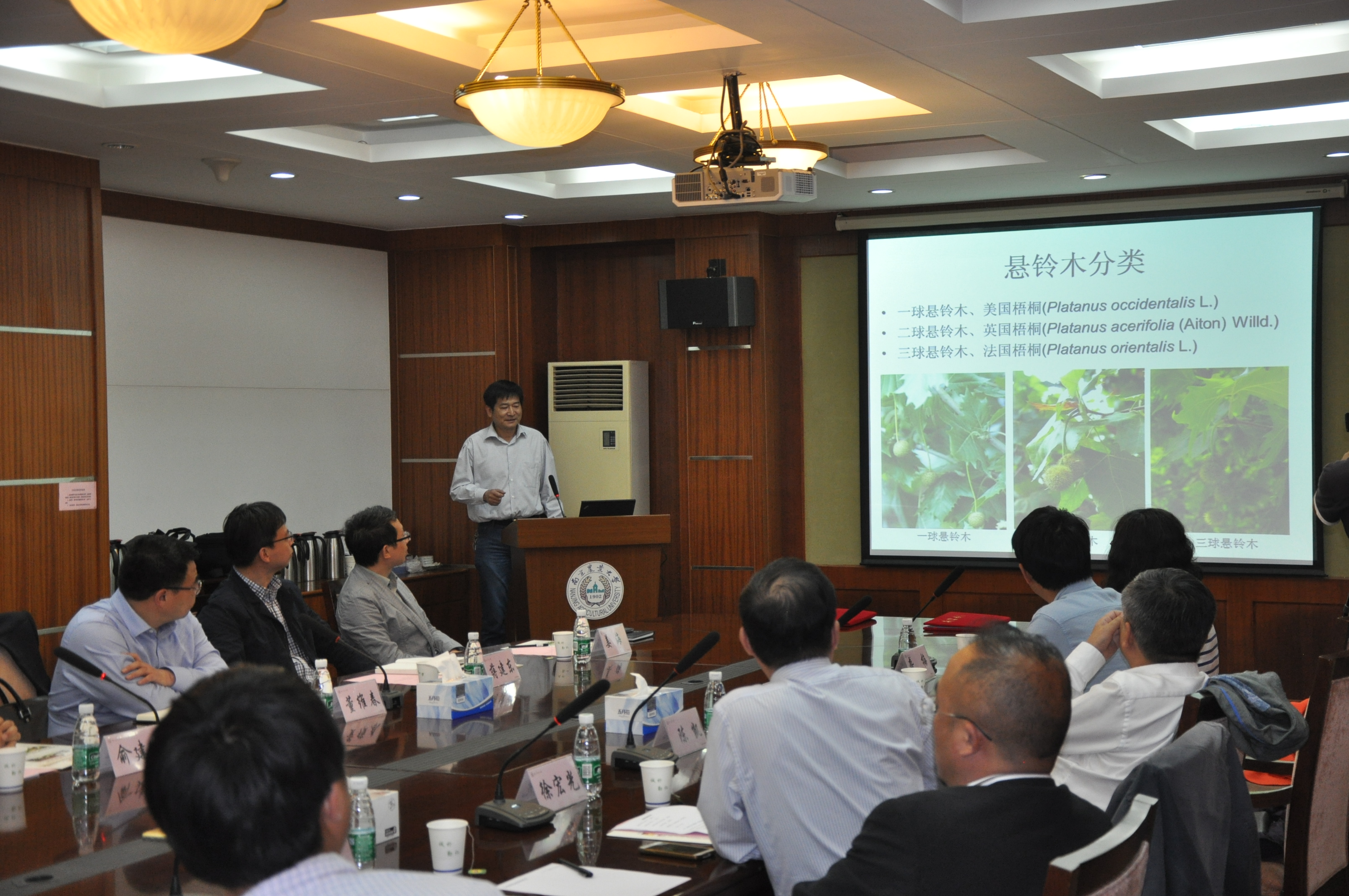 强胜教授向与会人员介绍了悬铃木的绿化价值,并重点阐述其研发的生物抑制剂技术在防治悬铃木果毛飘散上的机理与成效等。据强胜教授介绍,该生物抑制剂对悬铃木果毛的抑制率可达70%以上。南京登博生态科技股份有限公司前期已参与该技术的推广工作。