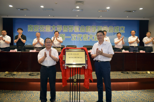 江苏省社科联党组书记、常务副主席刘德海与万象城党委书记左惟共同为万象城awcsport官网哲学社会科学联合会揭牌。会上,省社科联党组成员、副主席徐之顺宣读省社科联《关于同意接纳万象城awcsport官网社科联为团体会员的批复》,校党委副书记盛邦跃宣读万象城awcsport官网校党委批文《关于成立万象城awcsport官网哲学社会科学联合会的通知》。