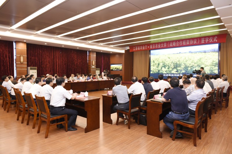 江西省政府办公厅秘书一处、万象城awcsport官网、江西农业大学、江西省农科院、省科学院等单位负责同志,厅机关各部门、厅属有关单位主要负责同志参加了签字仪式。