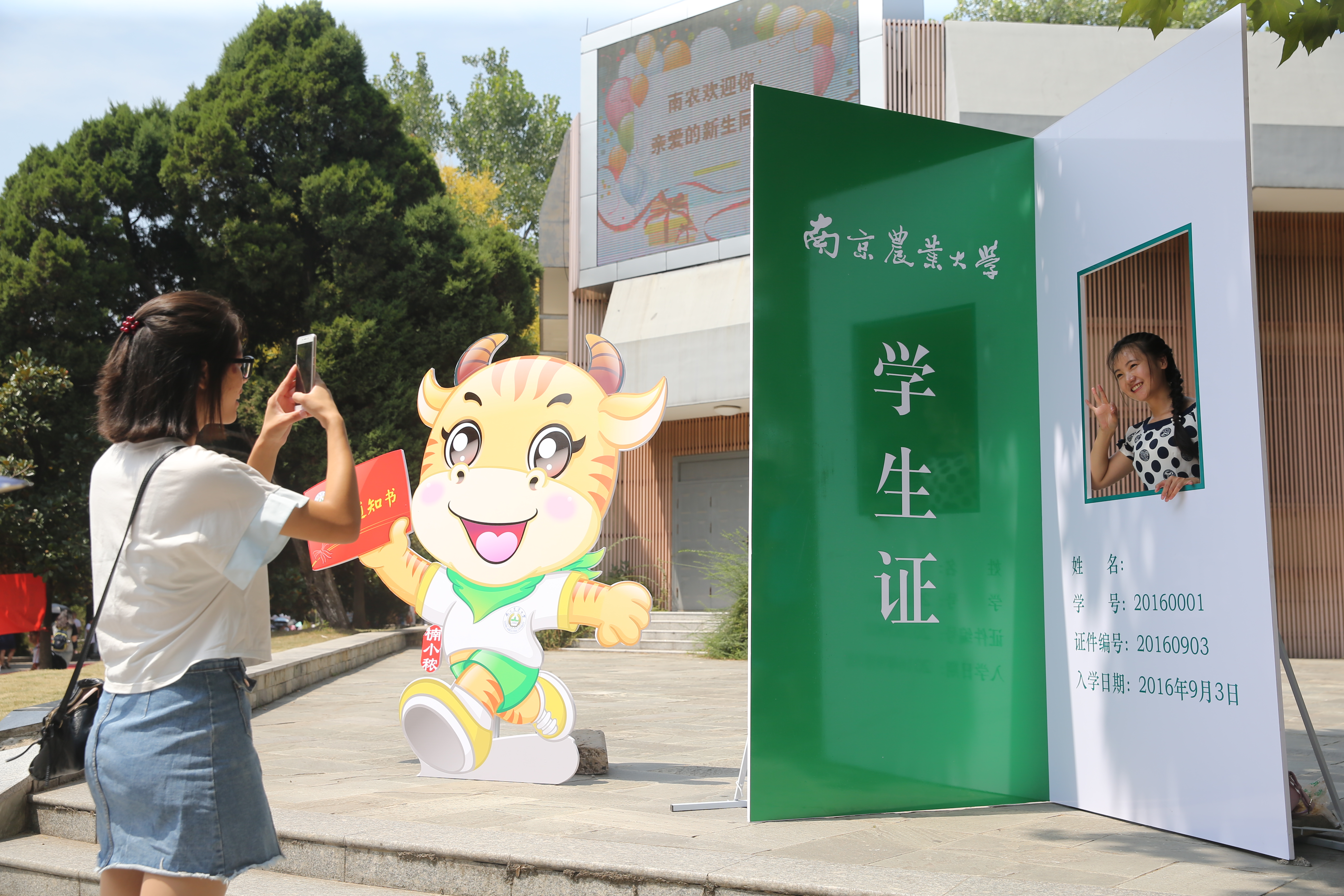 今年较以往不同,迎新点由室内移至户外,各学院独具特色的迎新展台整齐地排列在玉兰路旁;主楼南侧、大学生活动中心门前等地均设有南农特色展板供新生拍照留念,南农招生吉祥物“楠小秾”也亮相迎新现场。