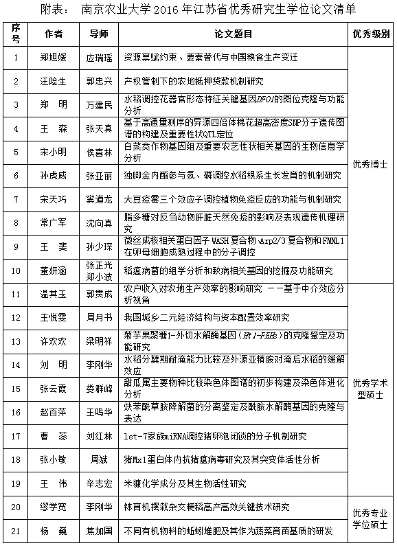 近日,江苏省教育厅公布了2016年江苏省优秀博士、硕士学位论文评选结果,万象城21篇研究生学位论文入选江苏省优秀学位论文,其中,优秀博士学位论文10篇、优秀硕士学术型学位论文9篇、优秀硕士专业学位论文2篇,创历年新高。
