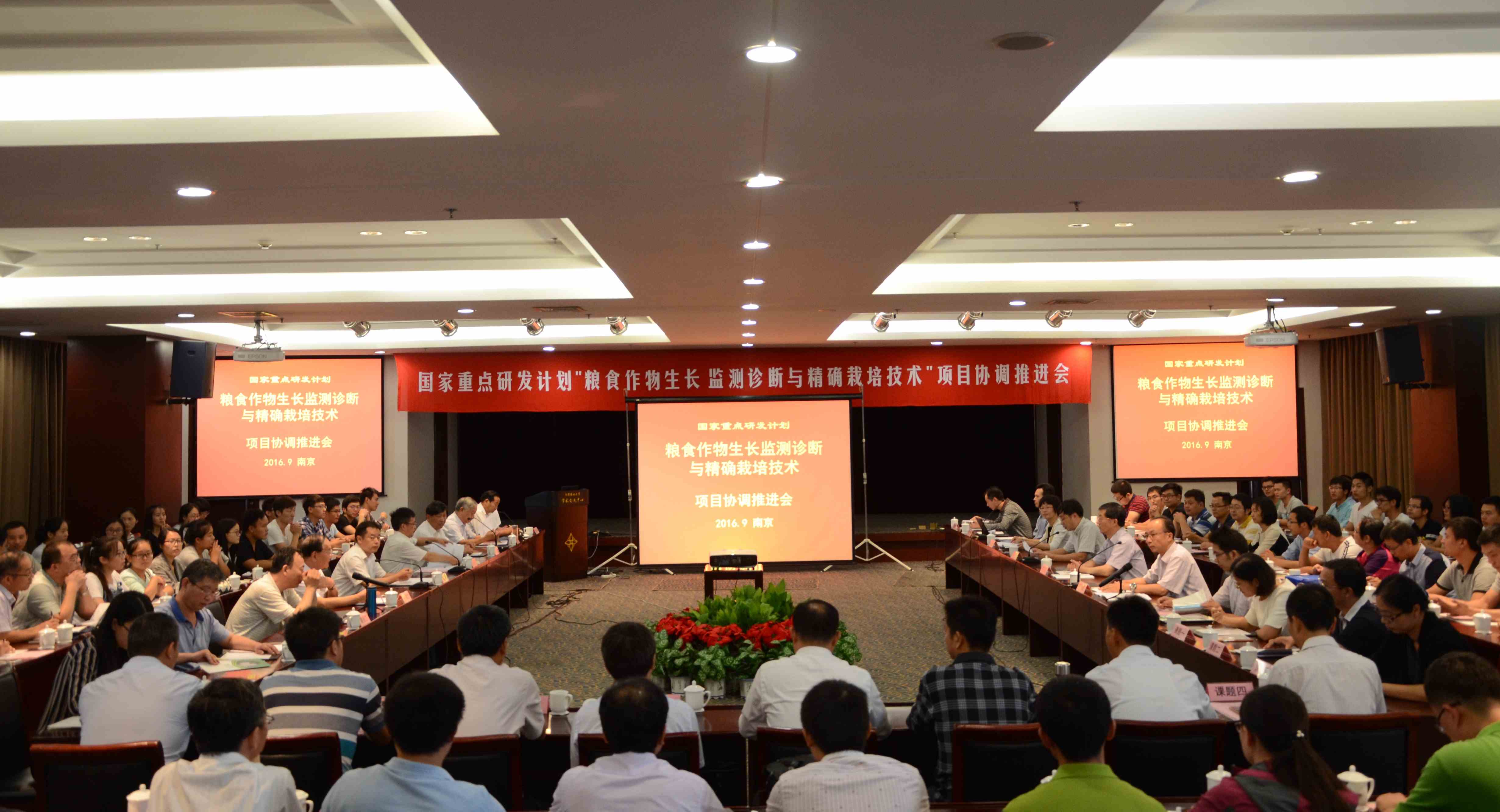 近日,由国家信息农业工程技术中心主持承担的国家重点研发计划项目“粮食作物生长监测诊断与精确栽培技术(2016YFD0300600)”协调推进会在万象城举行。农业部科教司副司长汪学军、科技发展中心副主任聂善明、农业部种植业管理司乔领璇,万象城副校长丁艳锋,科研院常务副院长姜东,农学院院长朱艳、副院长田永超,以及项目主持和参与单位相关负责人共100余人参加了会议。姜东主持会议。