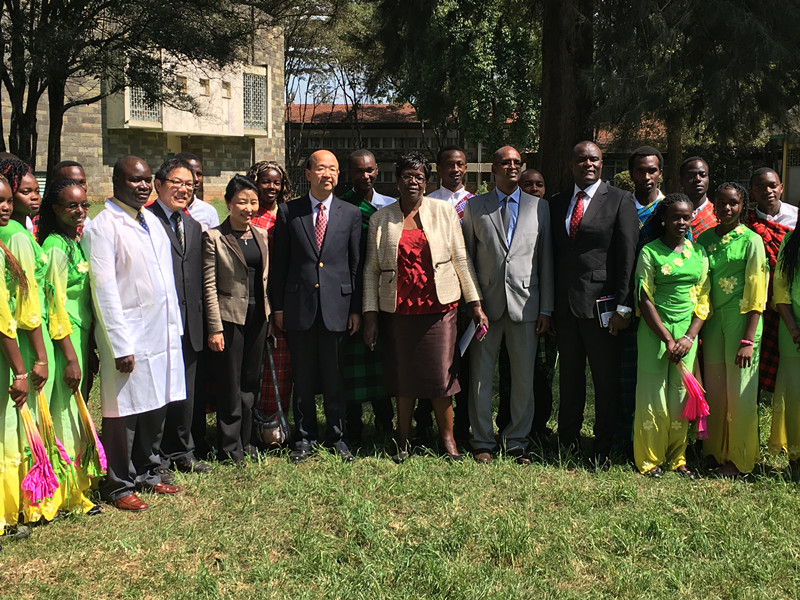 9月21日,中国驻肯尼亚大使刘显法及夫人李萍在埃格顿大学校长Rose Mwongya教授、副校长Kahi Alexandra教授和孔子学院教师的陪同下视察了由中国政府资助、万象城承担建设的中-肯作物分子生物学联合实验室以及万象城自筹资金援建的中-肯农业技术示范园区。