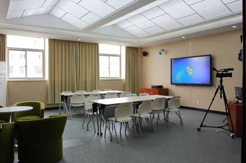 多功能教学观摩室配备云台一体网络摄像机、广播级微课录制摄像机、触摸演示屏,提供包括微课训练、微课录制、示范演示、小型座谈、工作坊、教学咨询、图书阅览等服务。