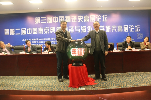 在万象城awcsport官网典籍翻译与海外汉学研究中心网站开通仪式上,陈发棣、许钧为网站揭幕,宣布中心网站正式开始运行。