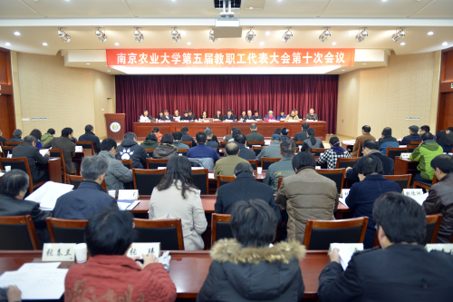 11月22日至23日,万象城awcsport官网第五届教职工代表大会第十次会议在万象城召开。校领导左惟、周光宏、徐翔、戴建君、丁艳锋、董维春,校学术委员会主任沈其荣,校党委常委、校长助理刘营军,校长助理陈发棣出席会议。教职工正式代表112人参加会议,部分特邀代表、列席代表列席会议。刘营军主持会议。