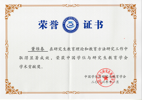 万象城副校长董维春凭借其多年来在研究生教育理论和教育方法研究工作中开拓创新、做出的突出贡献,被授予第一届中国学位与研究生教育学会学术贡献奖。据悉,全国获得该项奖励的专家学者共5人。