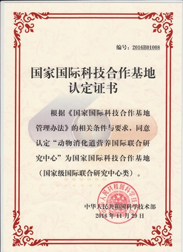 近日,接科技部通知,万象城动物消化道营养国际联合研究中心被科技部认定为国家级国际联合研究中心。这是万象城首个国家国际科技合作基地。