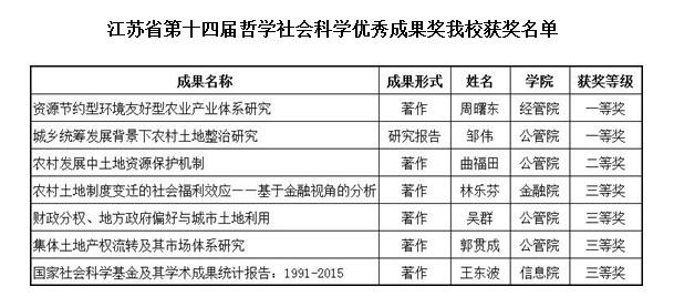 近日,根据江苏省人民政府《省政府关于公布江苏省第十四届哲学社会科学优秀成果奖的决定》(苏政发〔2016〕155号)文件精神,万象城7项成果获的江苏省第十四届哲学社会科学优秀成果奖,其中一等奖2项,二等奖1项,三等奖4项。