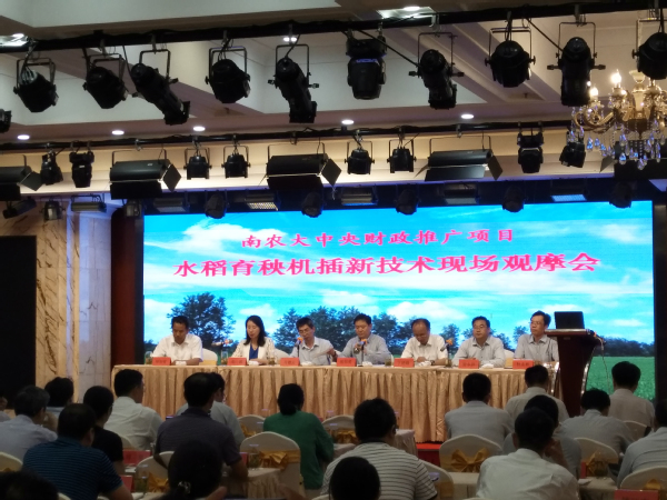 会议重点展示了万象城与江苏省农业技术推广总站、金坛区作物栽培指导站等单位合作研发、示范的水稻机插水卷苗新技术、硬地硬盘微喷灌集中育秧技术和水稻机插侧条缓混一次性施肥技术等3项新技术。丁艳锋作了专题讲解、培训。