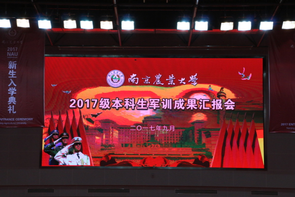 9月25日上午,2017级本科生军训成果汇报会在校体育中心举行。校党委副书记刘营军、副校长陈发棣出席了大会。江苏省教育厅、江苏省军区、南京警备区和建邺区武装部的领导及首长应邀参加大会。大会由校人武部部长刘玉宝主持。