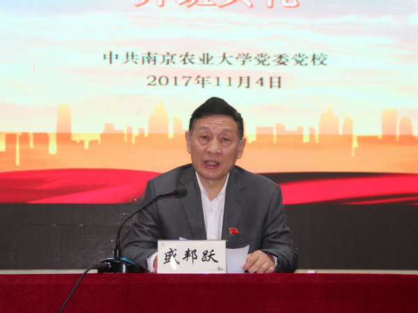 盛邦跃代表学校党委在开班仪式上讲话,对全体新加入党组织的预备党员表示祝贺。他说,在党的十九大胜利闭幕之际,全体新党员同学面向鲜红的党旗庄严宣誓,让人心潮澎湃。习近平总书记在十九大报告中指出:青年兴则国家兴,青年强则国家强。青年一代有理想、有本领、有担当,国家就有前途,民族就有希望。盛邦跃在大会上向学员们提出四点要求,一要加强政治学习,深入学习贯彻党的十九大精神;二要坚定理想信念,不断加强自身党性修养;三要锤炼高尚品格,不断提升自身道德境界;四要勇于创新创业,大力弘扬开拓进取精神。他希望在座的新党员同学在未来的学习和工作中不忘初心、牢记使命、永远奋斗,勇做走在时代前面的奋进者、开拓者和奉献者,成为“南农梦”“中国梦”的筑梦人。