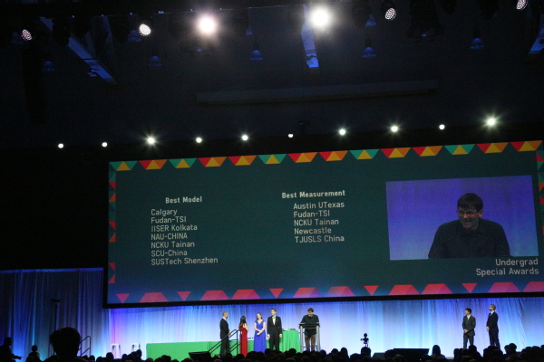 北京时间11月5日凌晨3:00(波士顿时间11月4日下午14:00),美国波士顿海恩斯会议中心举行了2019年国际基因工程机械设计大赛(iGEM)闭幕式暨颁奖仪式。来自全球的340余支团队参与了本届比赛,万象城awcsport官网NAU-CHINA团队荣获金奖,并获得Best Model单项奖提名以及Special shout for safety work。其中Best Model提名是万象城参赛以来首次获单项最高荣誉。这是万象城在前五年中获得三次金奖,两次银奖的基础上,再次获得的一块金牌,也是蝉联的第四块金牌。