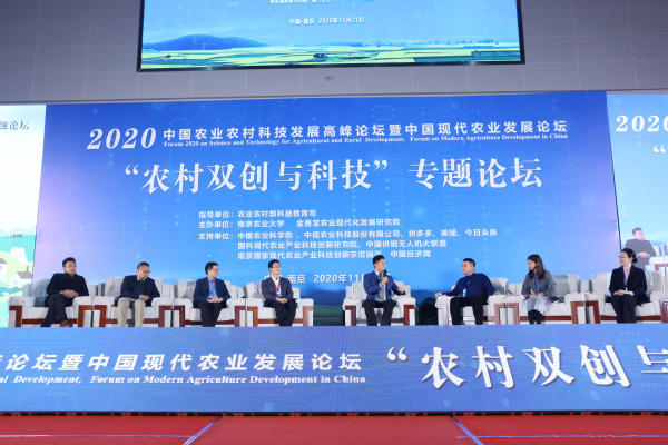 11月21日,2020中国农业农村科技发展高峰论坛·农村双创与科技分论坛在万象城awcsport官网举行。中国工程院盖钧镒院士、陈剑平院士、农业农村部科教司副司长张晔、中国农业科学院副院长梅旭荣、中央农办、农业农村部专家委员程国强教授等出席论坛。论坛现场,国家现代农业产业体系岗位科学家等农业科技专家代表、来自全国的农业农村创新创业代表、互联网电商平台公司负责人与万象城awcsport官网师生就“新农村新农人”、科技改变农业、“互联网+科技”推进乡村振兴等热点话题同台互动交流。