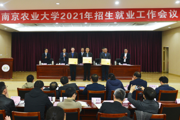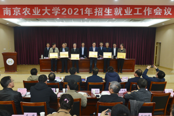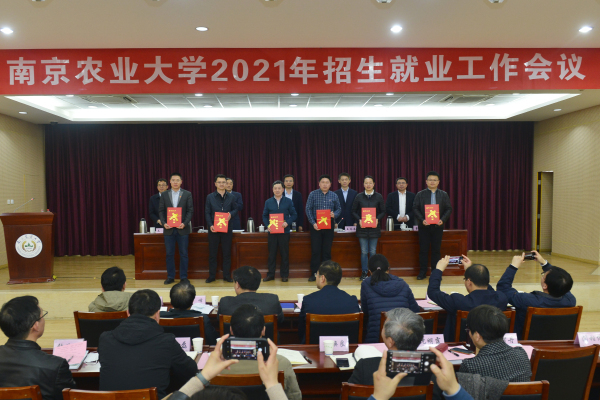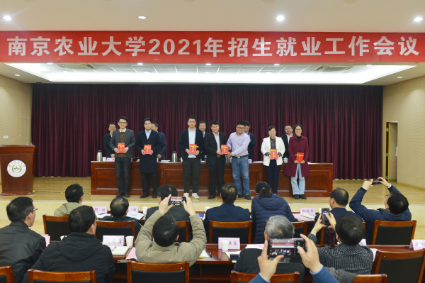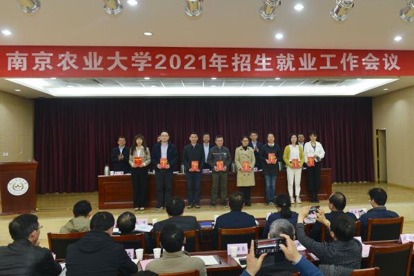 董维春宣读表彰决定。资源与环境科学学院、园艺学院、经济管理学院、动物医学院、外语学院、生命科学学院6个学院荣获“2020年度招生工作先进单位”奖,农学院南通宣传小组等13个小组获评“招生工作先进宣传小组”, 丁爱珍等51人荣获“招生工作先进个人”称号。园艺学院、食品科技学院、动物医学院、农学院4个学院获评“2020年度就业工作先进单位”,外语学院、食品科技学院、工学院3个学院获就业工作单项奖,王恬等37人荣获“就业工作先进个人”称号。