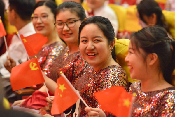 “歌声和汗水一路挥洒,中国梦的旗帜再一次出发”,《不忘初心》《灯火里的中国》《中国梦》《再一次出发》用歌声唱响复兴之路。