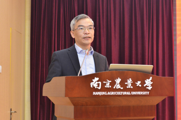 盖钧镒院士向新当选的沈其荣院士表示祝贺。盖钧镒总结了四位“从南农走出”的院士:程顺和、万建民、许为钢、沈其荣的科研经历,指出“在科学研究中聚焦生产生活中的实际问题,围绕产业领域的发展做出实实在在的贡献”是四位院士的共同特点。他希望更多的南农学者以持之以恒、坚持不懈的科研情怀,坚守和聚焦国家重大战略需求的科学问题,弘扬科学家精神,加快解决制约科技创新发展的关键问题,为服务学校发展和国家战略做出更大的贡献。