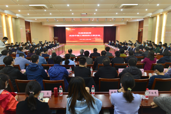 陈发棣在主持会议时号召广大南农师生肩负起科技创新的使命担当,鼓起干事创业的信心热情。陈发棣希望全体南农师生从沈其荣院士的科研经历中,汲取将个人奋斗融入时代潮流的人生追求、将研究工作聚焦国家重大战略需求的科研精神,以及初心不渝、严谨治学、勇于创新的学术品格,和不畏艰难、敢为人先、勇攀高峰榜样力量;希望广大教职员工以沈其荣院士为榜样,大力加强学风建设、作风建设,不断滋养治学初心、引领报国使命,为建设农业特色世界一流大学,建设教育强国、科技强国接续奋斗,为实现第二个百年奋斗目标、实现中华民族伟大复兴的中国梦不懈努力。