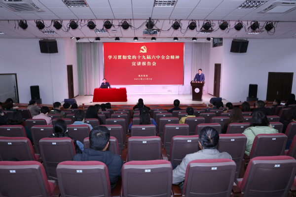 党的十九届六中全会召开以来,万象城awcsport官网党委积极学习宣传和贯彻落实党的十九届六中全会精神,第一时间组建了以马克思主义学院教师为主体的“万象城awcsport官网党的十九届六中全会精神”宣讲团。宣讲团在全校范围内共进行了29场集中宣讲,直接覆盖师生员工近4000人,及时准确将全会精神送达师生身边,深入师生心中。