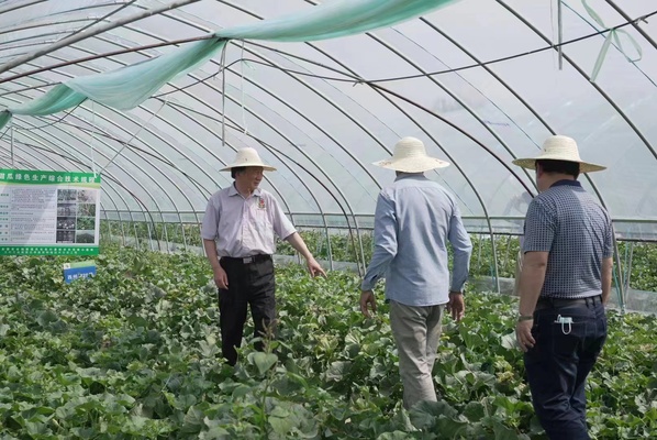 “要使作物持续长势良好,关键在于调控好土壤微生物区系”,沈其荣院士说,团队形成了采用育苗和大田施用有益菌双管齐下的“养生栽培”模式:先将浓度很高的木霉生物基质用于育苗,使木霉菌在瓜苗根表和根际大量定殖,让有益菌与瓜苗根系构成命运共同体,同时在即将移栽的大田再施用木霉全元生物有机肥,培育以木霉菌为主导的土壤微生物区系,实现逐渐“焕活”土壤、赋予土壤自身抑病能力的目的。这种双管齐下的“养生栽培”已经在不同经济作物上显现出很好的田间效果。5月22日,沈其荣院士来到瓜田,仔细查看瓜田长势,并对西甜瓜叶片出现的不同症状进行了讲解和答疑,为瓜田今后精准施肥提出了建议,这让胡守兴的信心和底气都更足了。