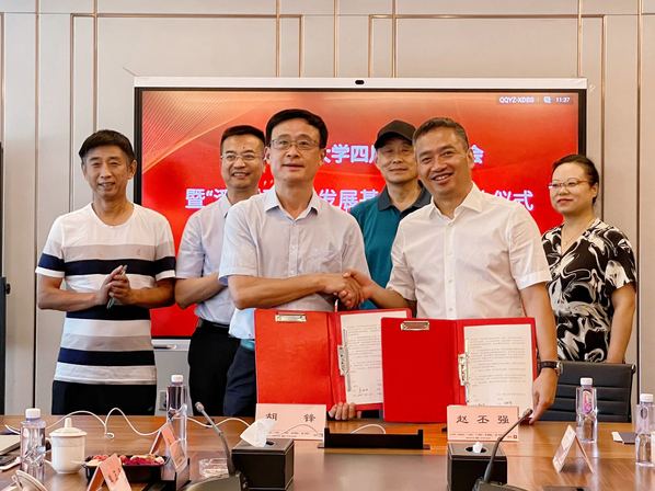 8月14日,潘君拯教育发展基金捐赠签约仪式暨四川校友座谈会在鑫投交科集团二楼会议室举行。校长陈发棣、副校长胡锋,四川鑫投交科集团主要负责同志,潘君拯家属以及20余位在蓉校友代表参加会议。会议由96级食品专业校友梁东妮主持。