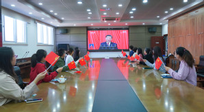浦口校区管委会干部、师生代表集中收看大会直播