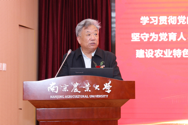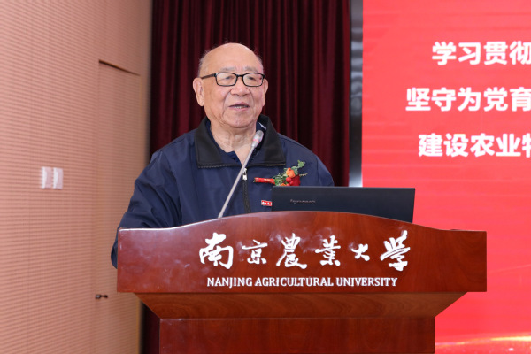 中国工程院院士、农学院教授盖钧镒代表获奖教师发言,他重点围绕师道、治学、成才三个方面,提出了为“中华民族伟大复兴培养优秀的农业科学家”的倡议与实现路径。