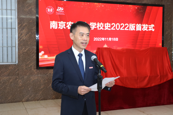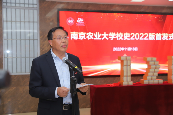 校史编委会副主任、执行总编董维春介绍了校史修订情况。他指出,新版校史的修编是一项宏伟的校园文化建设工程,旨在弘扬南农120年办学历史,传承文化,总结过去,启迪未来,在“尊重历史 传承创新”的原则下,凝聚了校史编写人员两年多的劳动和智慧,也传达了中国农业出版社校友对母校的深情。新版校史编修使校史教育成为南农“四史教育”的重要组成部分,成为科学家精神教育和知农爱农情怀教育的重要载体。