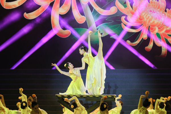 原创舞蹈《采菊花海》以翩翩舞姿展鸿篇“菊”制,演绎出新时代南农人聚焦乡村振兴主战场,创造出金菊花造就金银谷的“南农—麻江”脱贫模式。