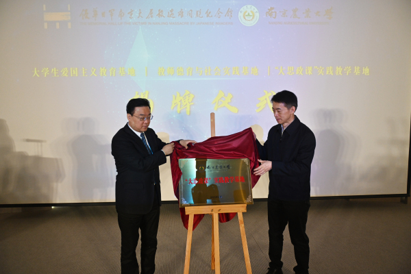 周峰在讲话中表示,侵华日军南京大屠杀遇难同胞纪念馆肩负着传承历史、警示未来的重要使命。纪念馆与南农设立共建基地,将高校思政课和纪念馆的育人资源有机融合,搭建馆校“思政联动”的大舞台,成为双方共同推进教育创新、弘扬爱国主义精神的重要举措。他希望南农师生们利用好基地,共同肩负起培养具有爱国情怀和责任担当的新一代青年的重任,为建设中国特色社会主义事业贡献力量。