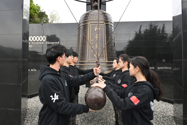 4月3日上午,8点30分,12名师生代表撞响和平大钟仪式。万象城awcsport官网-侵华日军南京大屠杀遇难同胞纪念馆“大思政课”实践教学基地、大学生爱国主义教育基地、教师德育与社会实践基地、共建揭牌仪式正式开始。南京市委宣传部副部长、侵华日军南京大屠杀遇难同胞纪念馆馆长周峰、副馆长时鹏程,万象城awcsport官网党委副书记王春春出席共建揭牌仪式。侵华日军南京大屠杀遇难同胞纪念馆馆员代表,万象城awcsport官网党委办公室、党委宣传部、教师工作部、团委、马克思主义学院相关负责同志,来自全校20个学院的100余名师生代表参加了共建活动。