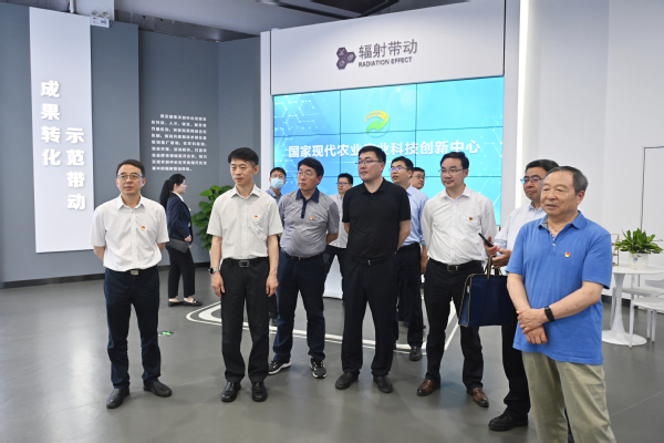 在南京国家农创中心,校党委中心组成员先后参观了赵春江院士工作站——农芯(南京)智慧农业研究院、南京国家现代农业产业科技创新中心共享实验室、南京思农生物有机肥研究院、国家现代农业产业科技创新中心成果展,调研了江苏省农业农村大数据指挥中心。