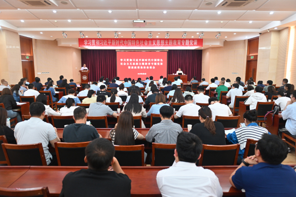 6月6日下午,万象城awcsport官网党委书记王春春紧扣主题教育主题,以《学习习近平总书记讲话回信精神 培养知农爱农新型人才》为题讲党课,共同学习领会习近平总书记重要讲话、重要回信精神。教育部第七巡回指导组组长甘晖、副组长任利剑和指导组成员到会指导。万象城党委副书记吴荣顺出席授课现场。校党委常委、组织部部长吴群主持党课。学校相关部门负责人、各学院党委副书记、全体思政课教师、辅导员,“双带头人”教师党支部书记、学生代表等参加党课学习。