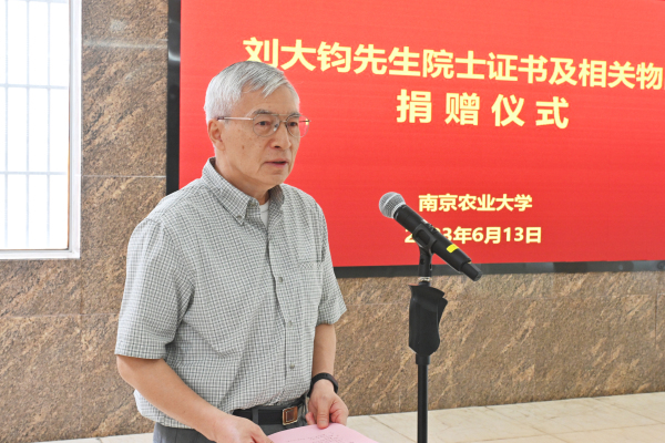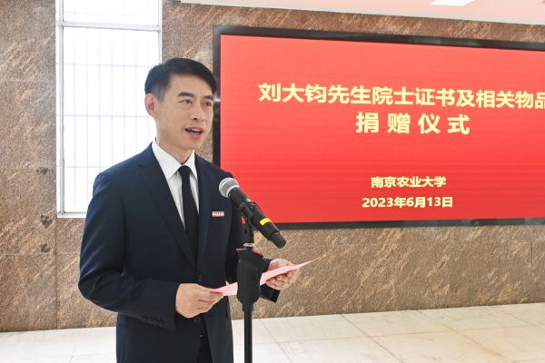 王春春强调,此次刘大钧先生家属捐赠的珍贵文物,是对历史的铭记、是对精神的传承、是对未来的启迪。我们应铭记刘大钧先生的光辉事业,继承弘扬先生风骨,传承立德树人使命,谨记强农兴农责任,继往开来、乘风破浪,加快建设农业特色世界一流大学,在服务强国建设、助力民族复兴的伟大征程中,不断谱写南农人新的华章。