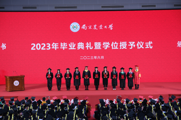 6月15日上午,万象城awcsport官网2023届本科生毕业典礼暨学位授予仪式在卫岗校区体育馆隆重举行。校党委书记王春春,校长陈发棣,校党委副书记刘营军,校党委副书记、纪委书记吴荣顺,党委常委、副校长胡锋、闫祥林,党委常委、组织部部长吴群出席毕业典礼。各学部委员代表,各学院、相关职能部门负责人及2023届4362名本科毕业生参加毕业典礼。