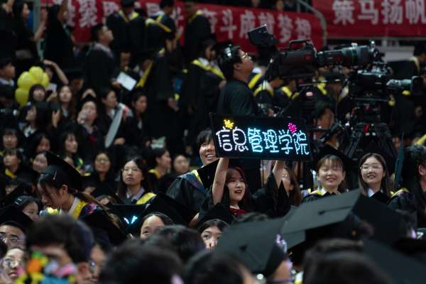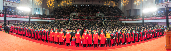 毕业典礼在庄严的国歌声中拉开帷幕。
