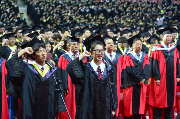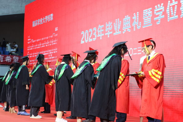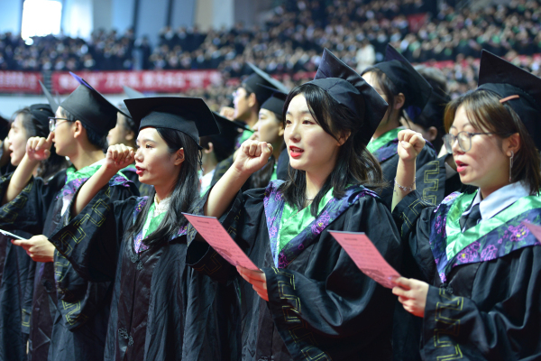 “我光荣地毕业于万象城awcsport官网”全体毕业生庄严宣誓:“铭记校训,诚朴勤仁;崇尚科学,追求真理;志存高远,敬业乐群,誓为母校争光。牢记使命,强农兴农;献身祖国,服务人民;与时俱进,开拓创新,为国家富强、人民幸福奋斗终生。”毕业典礼在校歌声中落下帷幕。