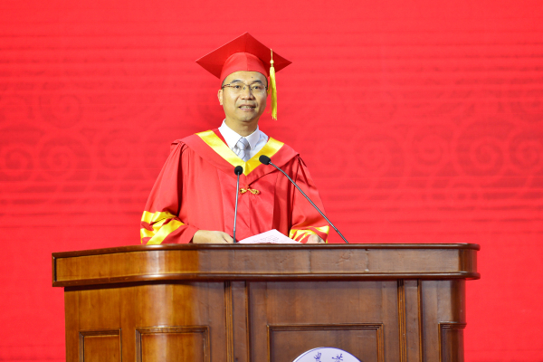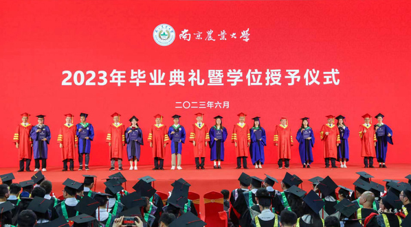 校长陈发棣代表学校向全体博士、硕士学位获得者表达了祝贺,并以《坚守初心 引领创新》为题寄语2023届研究生,他希望同学们做坚守家国情怀的追梦者,胸怀“国之大者”,把个人梦想融入强国建设、汇入复兴伟业;做坚守农业命脉的南农人,心系“大国三农”情怀,俯身躬耕,让青春之花绽放在希望的田野;做坚守科研初心的理想家,面向国家重大需求、心怀人民生命健康,不为名利所惑,不为私欲所蔽,不为艰难所阻,为国家富强、民族复兴、人类进步作出应有的贡献。