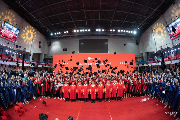 学位授予仪式在激人奋进的校歌声中圆满结束,同学们将学位帽高高抛向空中,共同见证这一难忘时刻。
