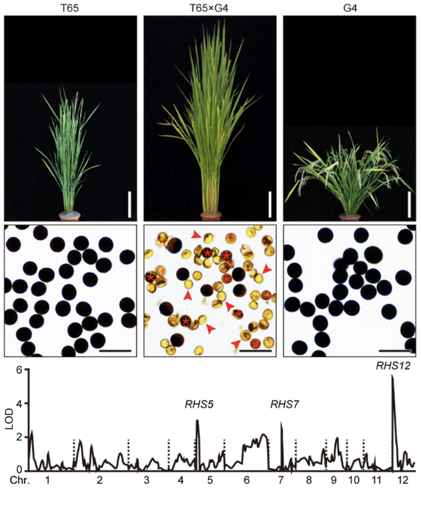 作物杂种优势利用是大幅提高粮食产量的重要途径。水稻分籼稻和粳稻两个亚种,我国北方多种植粳稻,南方多种植籼稻。上世纪七十年代以来,袁隆平先生研发的杂交水稻主要是利用籼稻亚种内的杂种优势,实现了水稻大幅增产,带来第二次“绿色革命”,为我国乃至世界粮食安全做出了突出贡献。一般来说,品种间亲缘关系越远,杂交优势越明显。如果籼稻和粳稻亚种间能育成超级杂交稻,据预测,可以比现有杂交水稻增产15%以上,因此如何利用亚种间的超强优势一直受到育种家的关注。然而,籼稻和粳稻之间存在严重的生殖隔离,其杂交种常表现出杂种不育现象,是阻碍杂种优势利用的最大障碍之一。本研究是继自私基因(Science, 2018)之后,该团队在杂种不育领域取得的又一突破性进展。