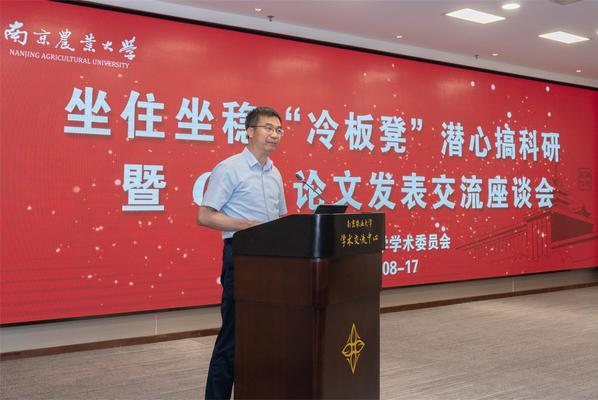 8月17日上午,学校召开坐住坐稳“冷板凳”潜心搞科研暨Cell论文发表交流座谈会。旨在鼓励和引导科研工作者,尤其是青年科研工作者,将个人理想融入国家和人民需要,将研究工作聚焦国家重大战略需求,甘坐“冷板凳”、攒够基本功,一步一步踏踏实实突破学术领域瓶颈,切实提升学校服务国家重大战略需求的能力。校长陈发棣、校学术委员会主任委员沈其荣院士、万建民院士、校学术委员会副主任委员钟甫宁出席会议。校学术委员会委员、相关职能部门和学院负责人、45岁以下青年教师和博士后代表参加会议。会议由校学术委员会秘书长罗英姿主持。