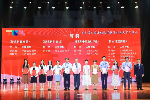 本届大赛以“推动教学创新,培养一流人才”为主题,分新工科、新农科、新医科、新文科、基础课程组、课程思政组六个赛道。大赛自2022年10月正式启动,全国32个赛区1194所高校的23088名教师参加了省赛。经各省(市、区)推荐,共465个教师(团队)进入国赛第一阶段网络评审,238个教师(团队)进入第二阶段现场评审。最终六赛道共评选出全国一等奖72项、二等奖166项、三等奖227项。