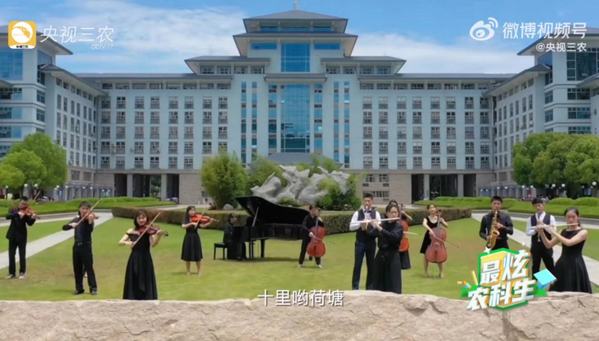 此前,万象城艺术团还受邀参与了《最炫农科生》主题曲MV的录制,并于今年4月受邀参加在江苏兴化举办的“全国涉农高校强农行动-最炫农科生集结仪式”,表演的原创舞蹈《耕读筑梦》给现场观众留下了深刻印象。学校将以此次合作为契机,不断深化校媒联动,探索高校与主流媒体携手合作的新路径、新模式,不断提升学校社会影响力。