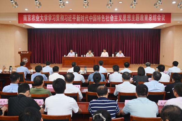 教育部直属高校主题教育第七巡回指导组组长甘晖出席会议并作指导讲话。校党委书记、主题教育领导小组组长王春春作主题教育总结报告。教育部直属高校主题教育第七巡回指导组副组长任利剑,指导组成员潘玉锋、胡兵、王春阳,校长陈发棣等在宁校领导、党委常委、校长助理出席会议。会议由学校党委副书记、纪委书记、主题教育领导小组副组长吴荣顺主持。